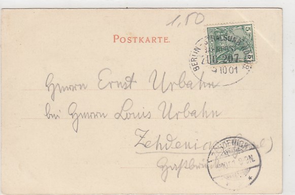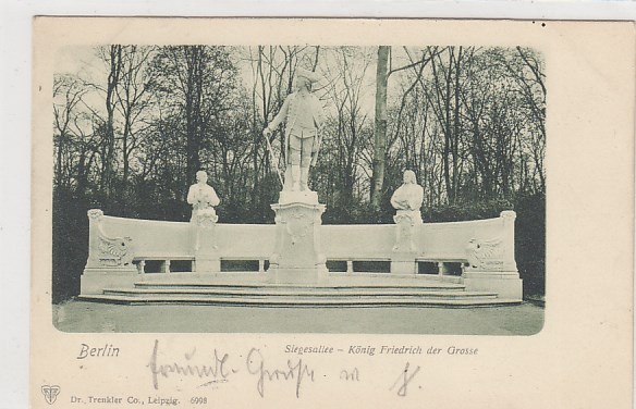 Berlin Tiergarten König Friedrich der Grosse Bahnpoststempel Stralsund 1901