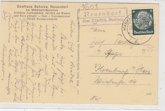 Neuendorf bei Märkisch-Buchholz mit Landpoststempel 1939