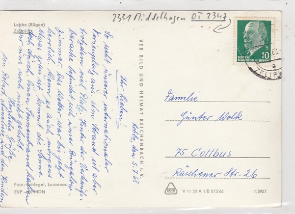 Friedland OT Chossewitz mit Landpoststempel über Beeskow 1961