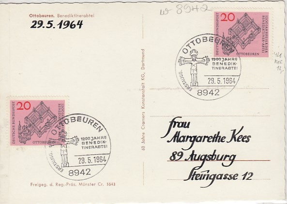 Ottobeuren Klosterkirche Luftbild Sonderstempel Benediktinerabtei 1964