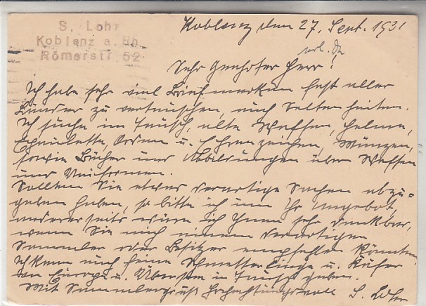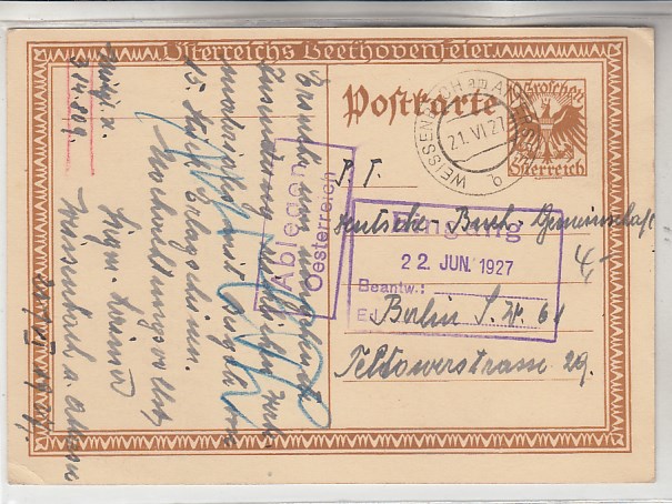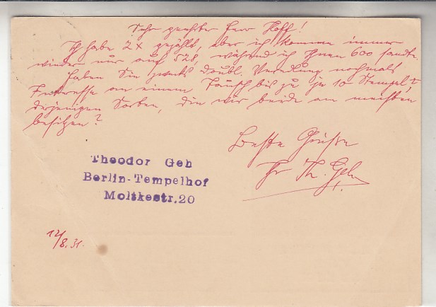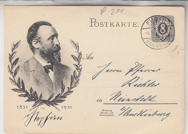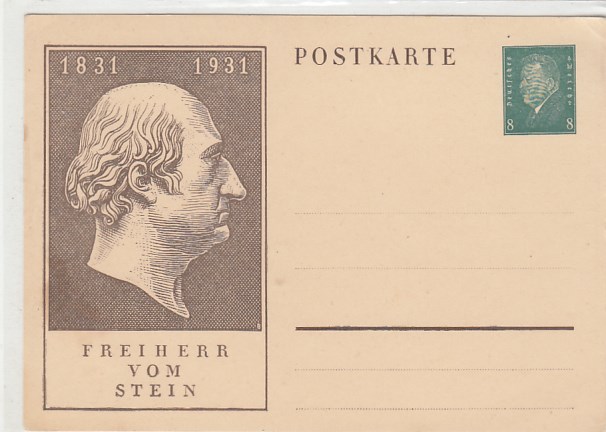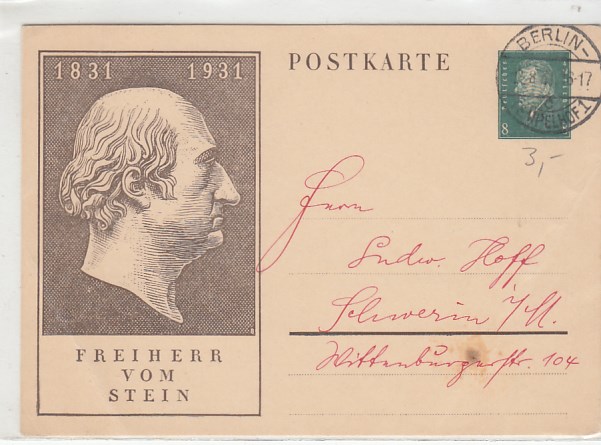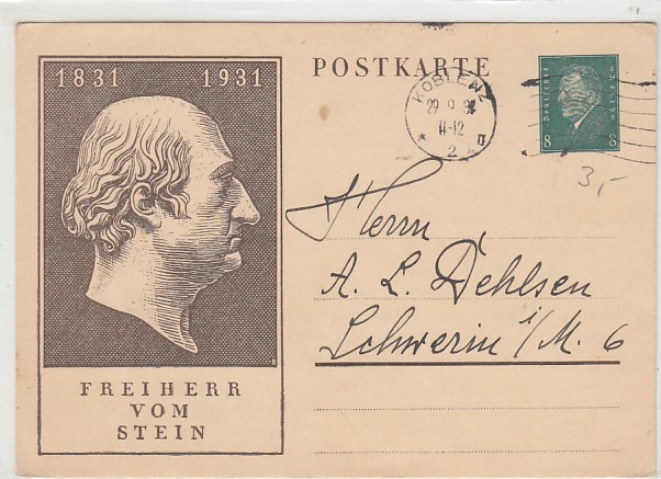 Privatganzsache Freiherr von Stein Stempel Berlin Tempelhof 1931