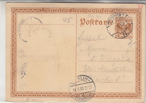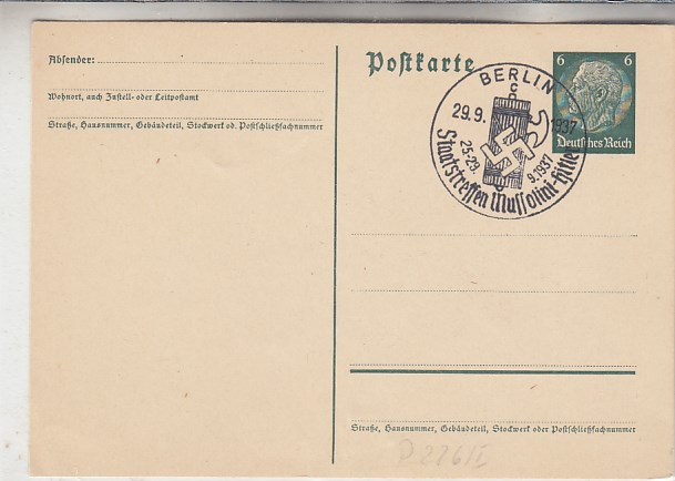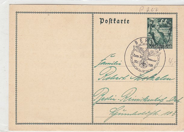 Privatganzsache Stempel Berlin 30 Januar 1938 P267
