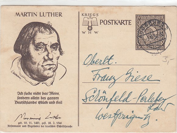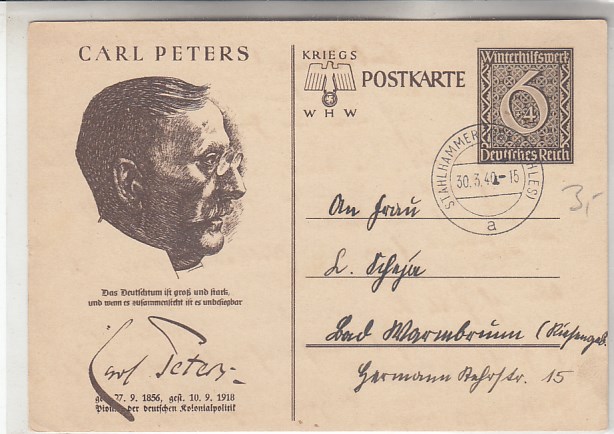 Privatganzsache Deutsches Reich Winterhilfswerk Carl Peters Stempel Stahlhammer