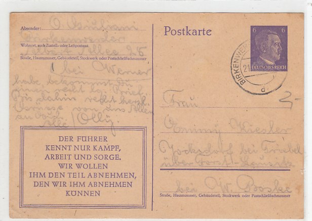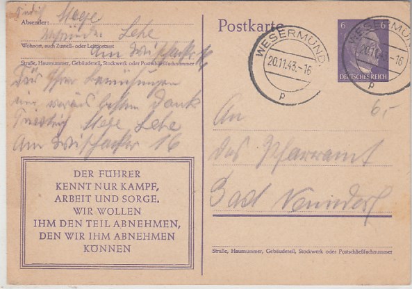 Privatganzsache Propaganda Stempel Wesermünde 1943
