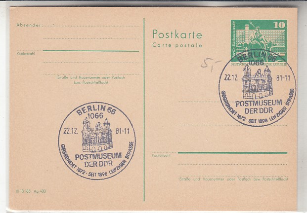 Privatganzsache Berlin Mitte Packetfahrtkarte Packet Stempel