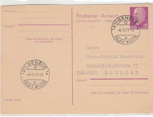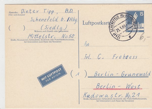 Privatganzsache DDR 15 Pfennig Berlin 1960 Lufttost Stempel Hamburg Schemfeöd