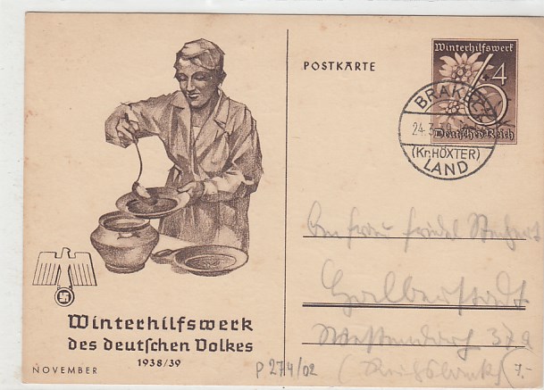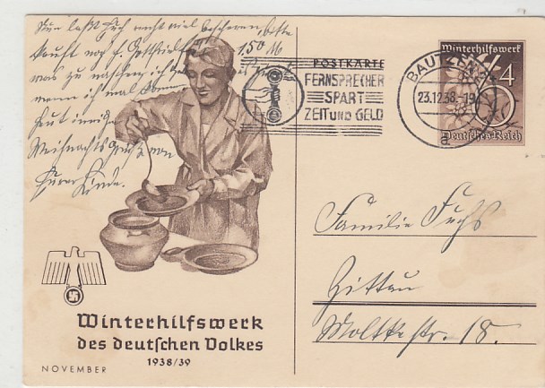 Privatganzsache Deutsches Reich Winterhilfswerk Stempel Bautzen 1938