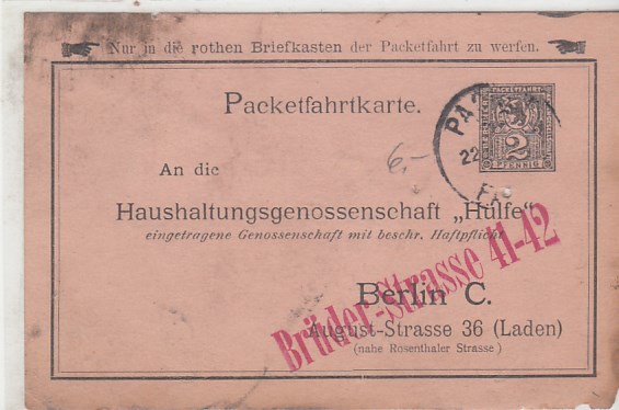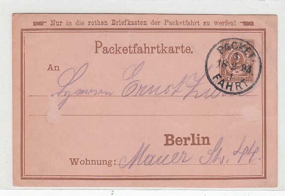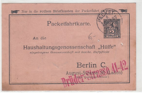 Privatganzsache Berlin Mitte Packetfahrtkarte Packetstempel