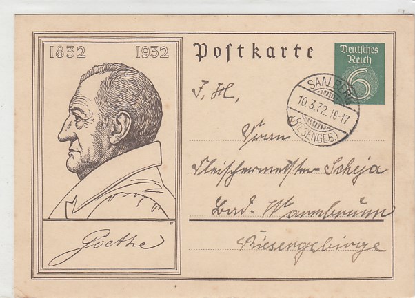 Privatganzsache Stempel Saalberg Riesengebirge 1932