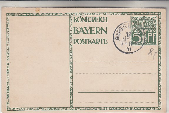 Privatganzsache Künstlerkarte Diez Königreich Bayern Stempel Augsburg 1911