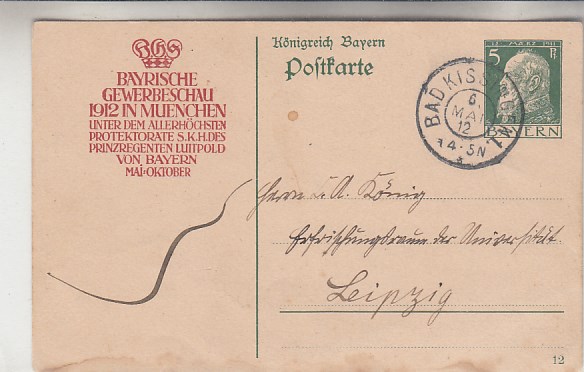 Privatganzsache Gewerbeschau München Stempel Bad Kissingen 1912
