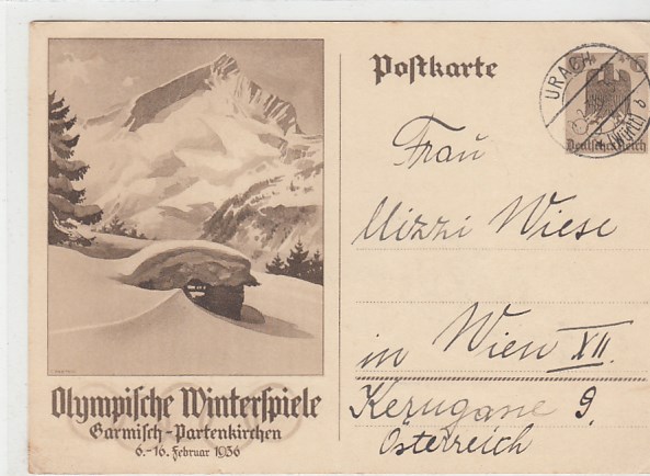 Privatganzsache Deutsches Reich Sport Olympische Winterspiele Garmisch-Partenkirchen Stempel Ura