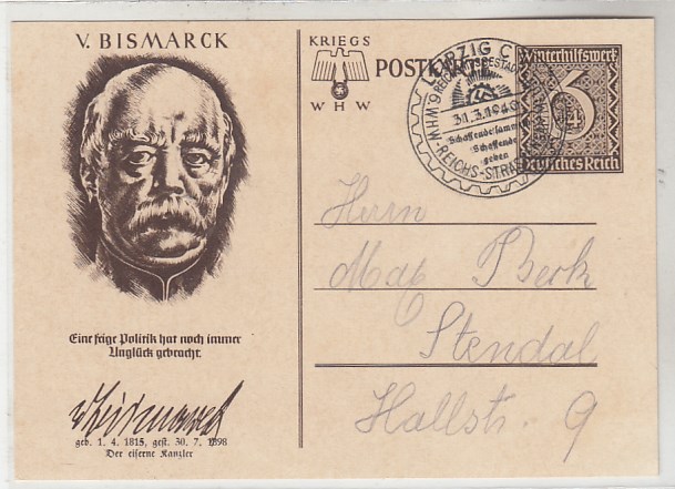 Privatganzsache Bismarck Sonderstempel Leipzig 1940