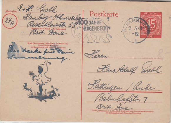 Privatganzsache Deutsche Post 45 pfennig Stempel Hamburg 1948