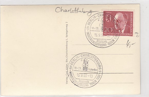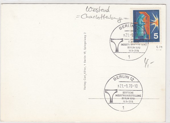 Berlin Charlottenburg Westend Industrieausstellung 1960 Sonderstempel