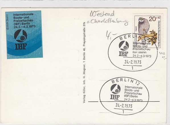 Berlin Charlottenburg Westend Boots Flugzeug Ausstellung Sonderstempel 1973