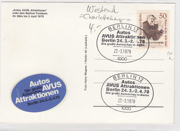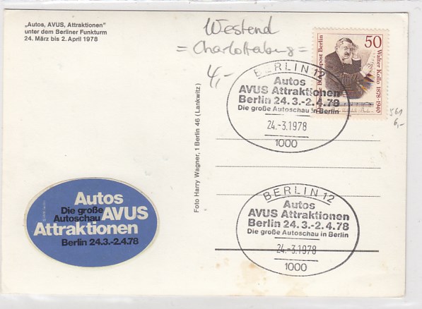Berlin Charlottenburg Westend Auto Industrieausstellung 1970 Sonderstempel