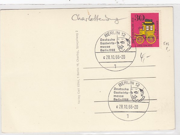 Berlin Charlottenburg Gastwirtmesse 1966 Sonderstempel