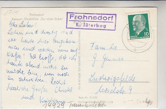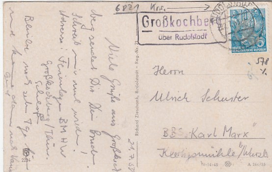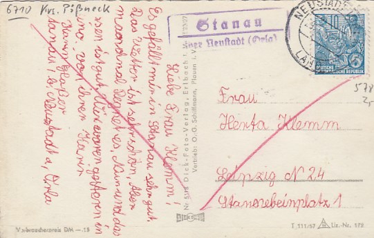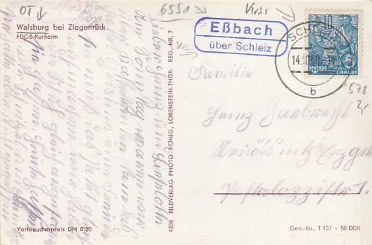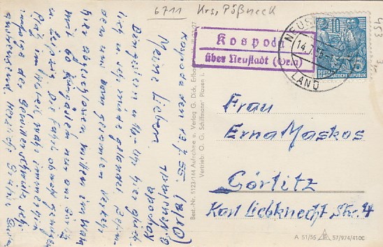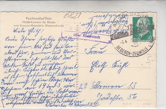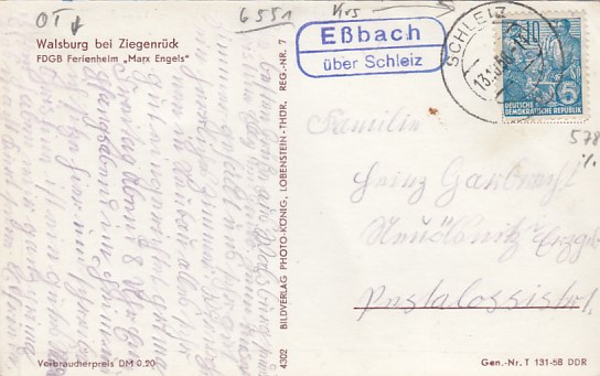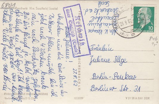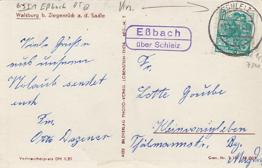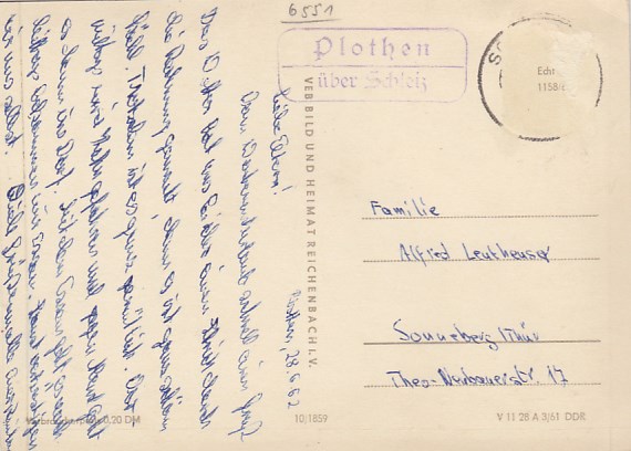 Plothen in Thüringen 1961 mit Landpoststempel bei Schleiz