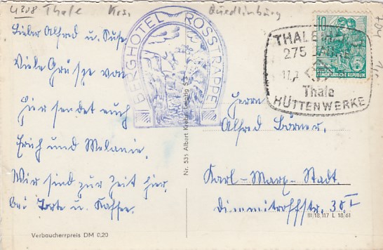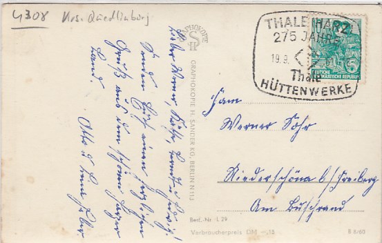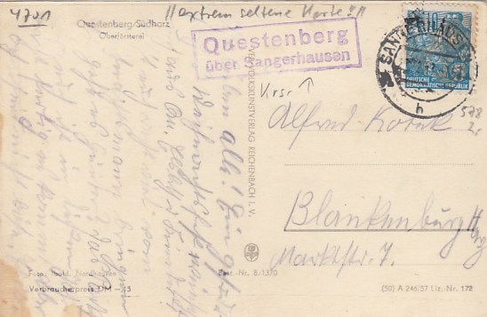 Questenberg bei Sangerhausen in Sachsen-Anhalt ca 1957 Landpoststempel