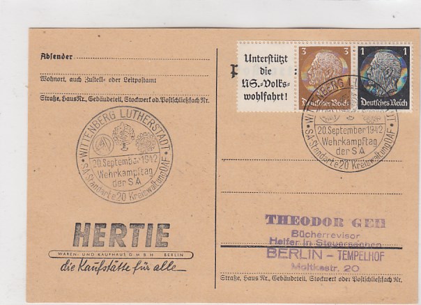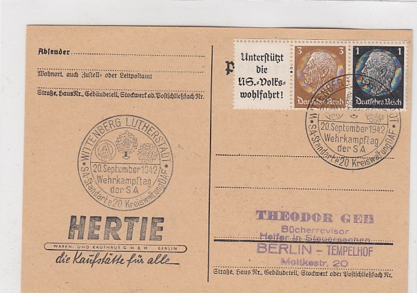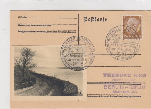 Lutherstadt Wittenberg Sonderstempel Wehrkampftag der S.A. 1942