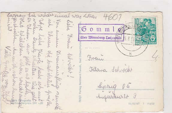Dübener Heide Gastsätte Oppin Landpoststempel Gommlo bei Wittenberg
