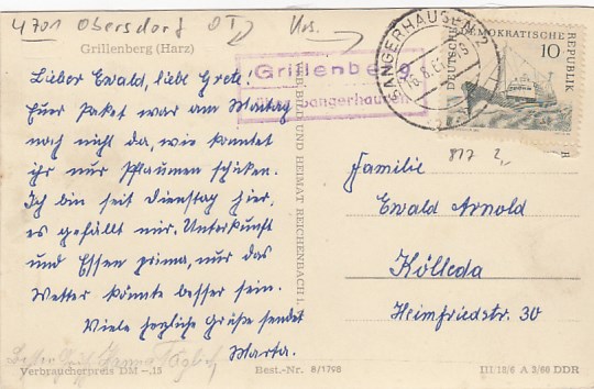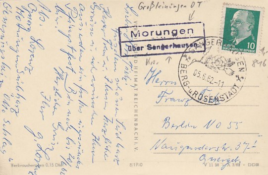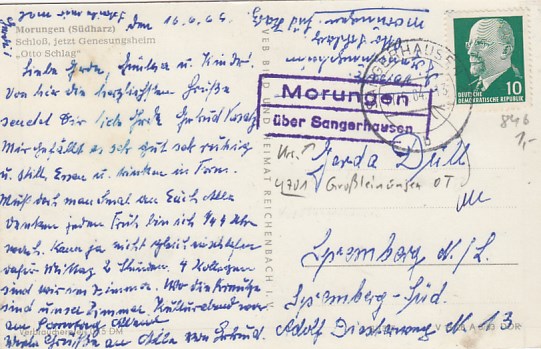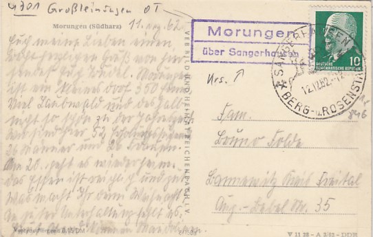 Großleinungen OT Morungen bei Sangerhausen Landpoststempel 1962