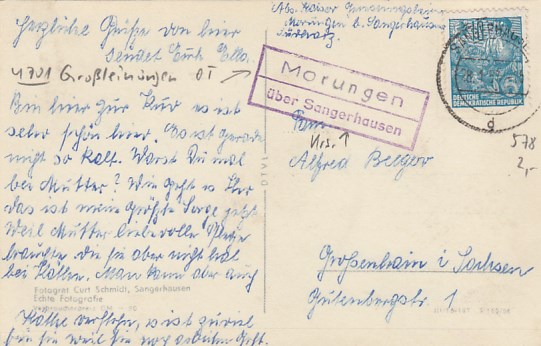 Großleinungen OT Morungen bei Sangerhausen Landpoststempel 1956