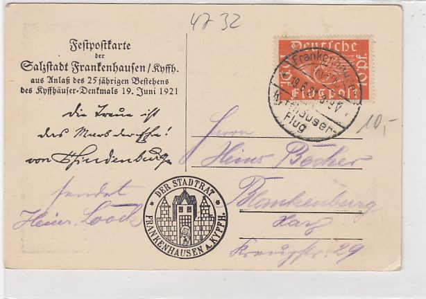 Bad Frankenhausen Kyffhäuser Denkmal Festpostkarte Sonderstempel 1921