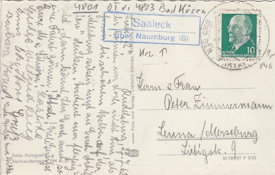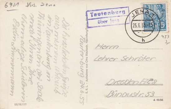 Rudelsburg Saaleck mit Landpoststempel 1962