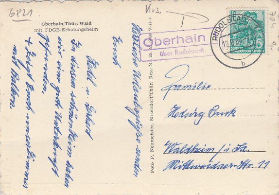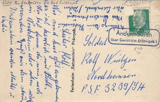 Ferienheim Katzenstein bei Andenhausen Thüringen Landpoststempel ca 1960