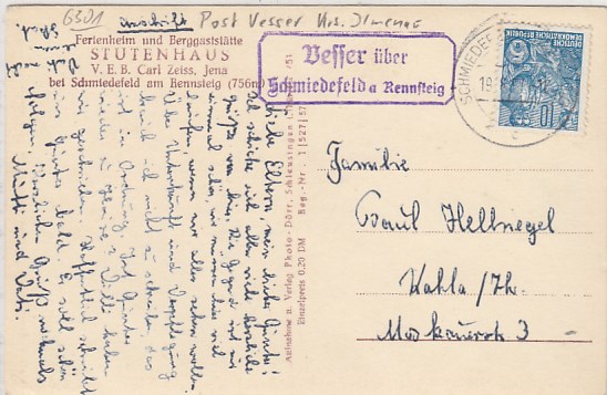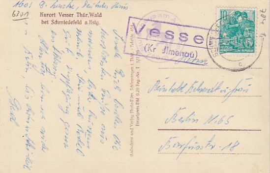 Vesser bei Schmiedefeld am Rennsteig Landpoststempel 1959