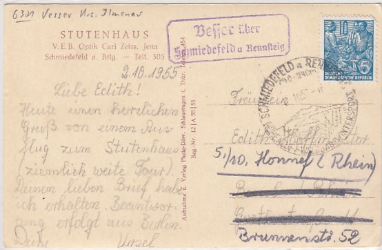 Vesser Stutenhaus bei Schmiedefeld am Rennsteig Landpoststempel 1957