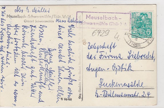 Meuselbach-Schwarzmühle Thüringen Bahnhof mit Landpoststempel 1960