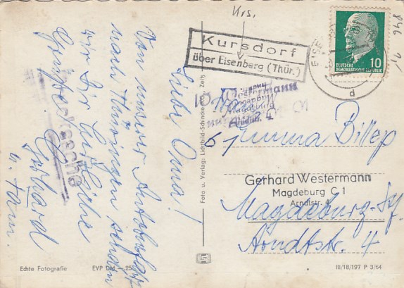 Mühltal bei Eisenberg in Thüringen 1964 Landpoststempel Kursdorf