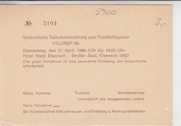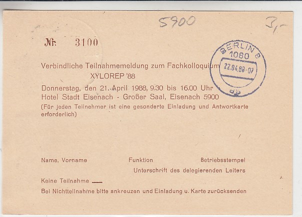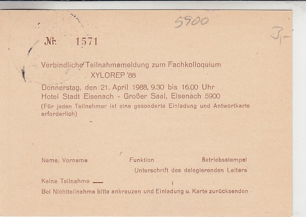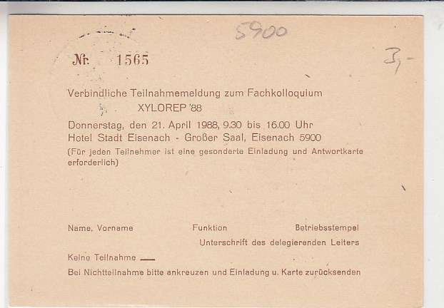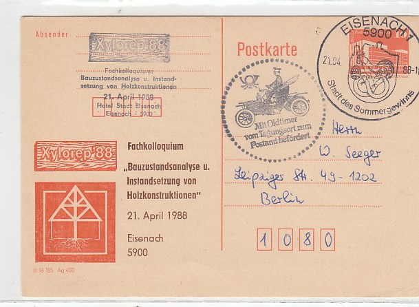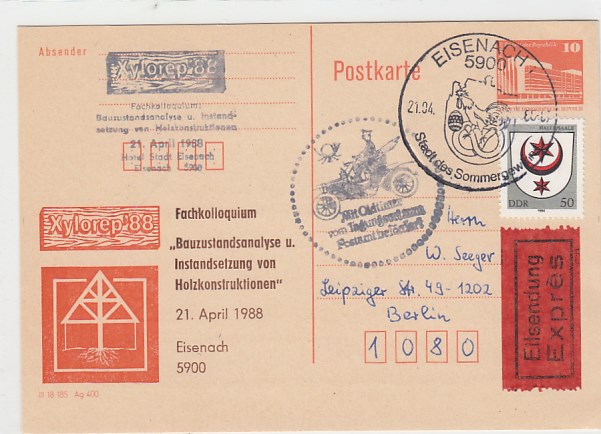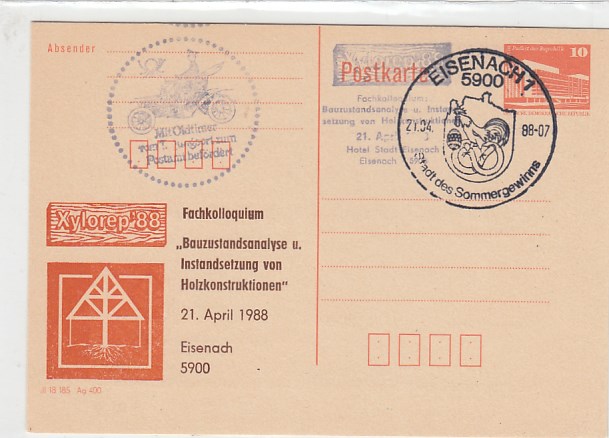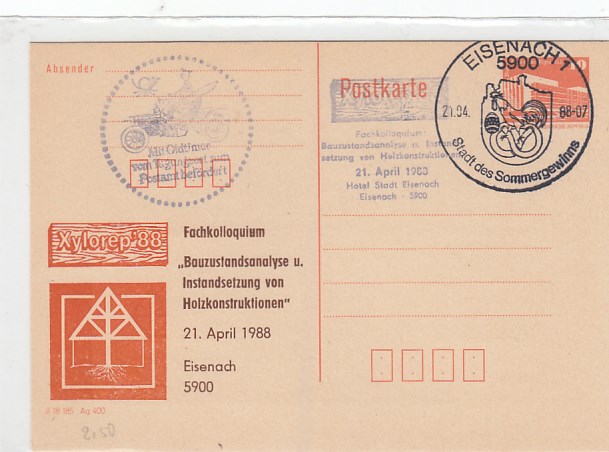 Eisenach Thüringen Anlaß Postkarte mit Sonderstempel 1988