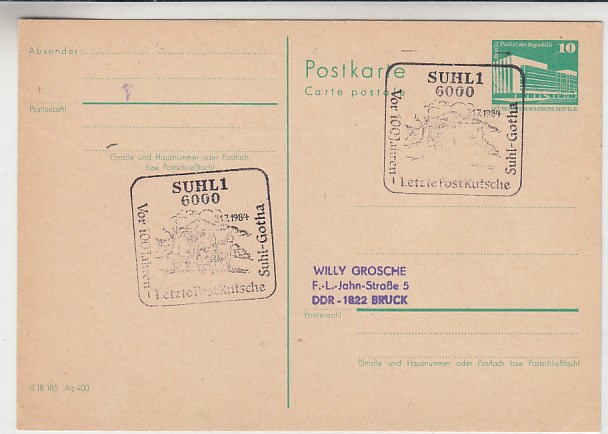 Suhl - Goldlauter Thüringen Postkarte mit Sonderstempel