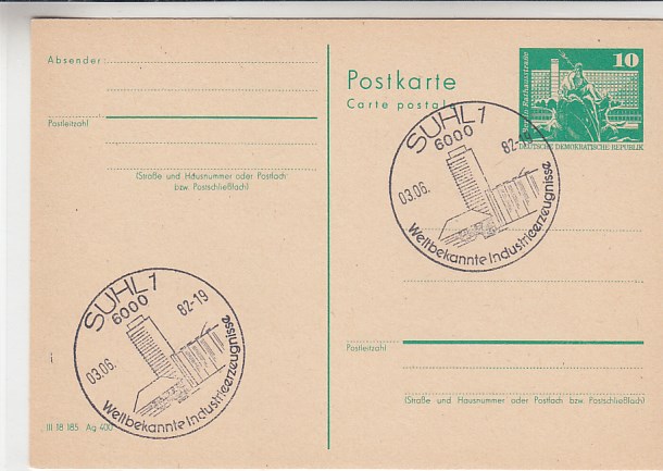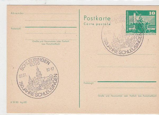 Schleusingen Thüringen Postkarte mit Sonderstempel 1982