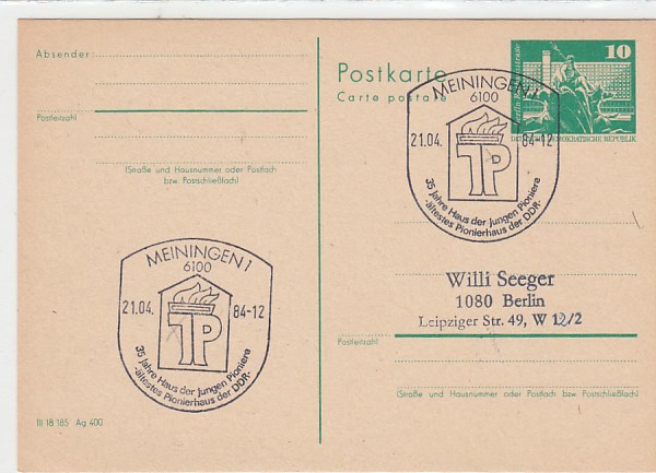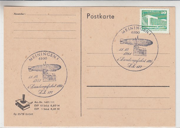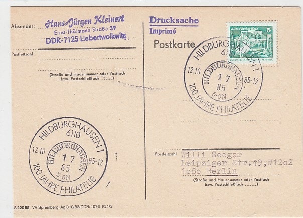 Hildburghausen Postkarte mit Sonderstempel 1985