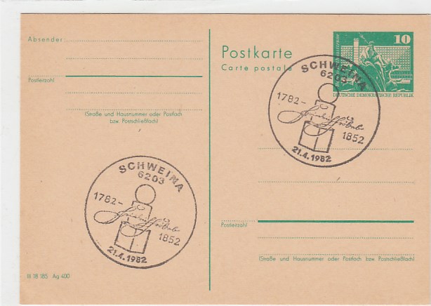 Schweina Thüringen Postkarte mit Sonderstempel 1982