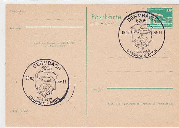 Dermbach Rhön Thüringen Postkarte mit Sonderstempel 1986