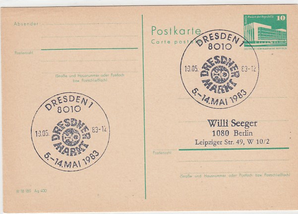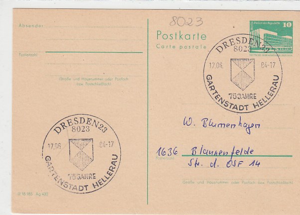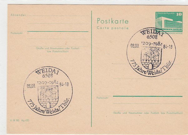 Weida in Thüringen Postkarte mit Sonderstempel 1984