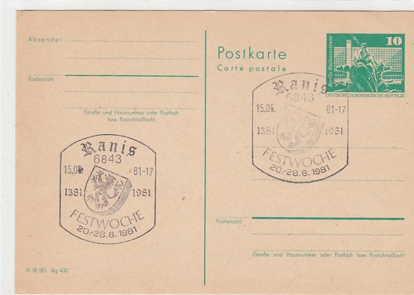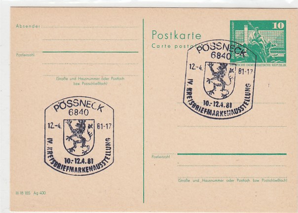 Pößneck Thüringen Postkarte mit Sonderstempel 1981