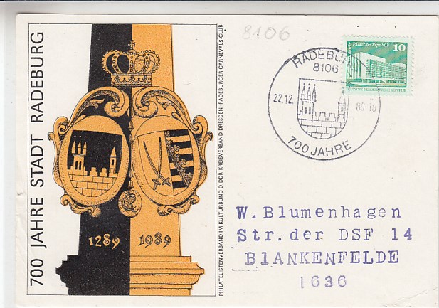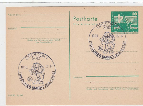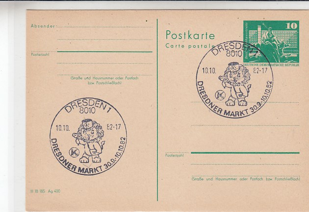 Crimmitschau in Sachsen Postkarte mit Sonderstempel 1989