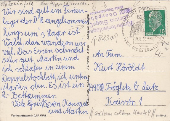 Thum im Erzgebirge Sonderstempel Kinderferienlager 1965