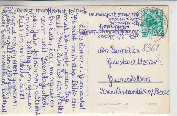 Tellerhäuser im Erzgebirge Landpoststempel Kreis Schwarzenberg 1961