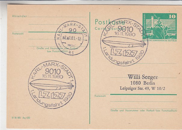 Gera Thüringen Postkarte mit Sonderstempel 1981