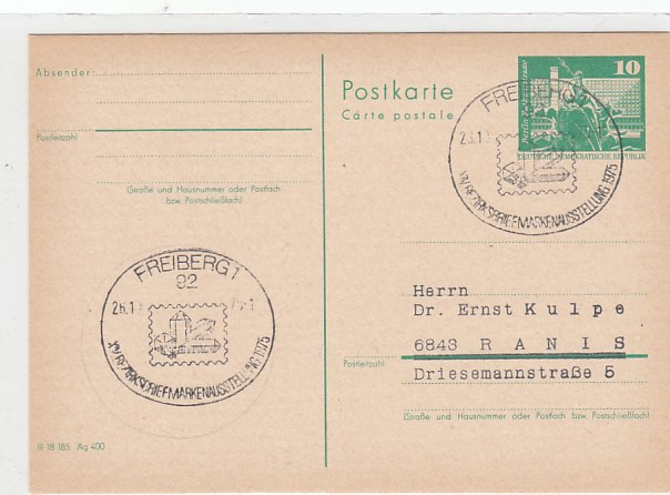 Freiberg in Sachsen Postkarte mit Sonderstempel 1975