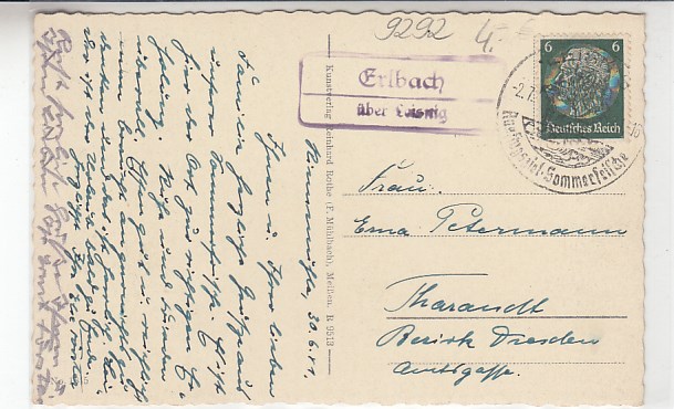 Binnmühle bei Geringswalde Landpoststempel Erlbach 1941