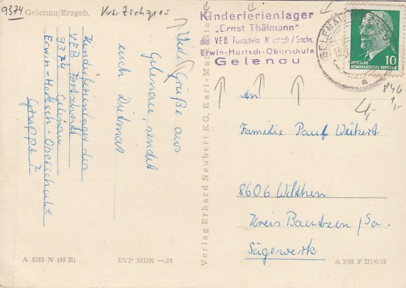 Gelenau im Erzgebirge Sonderstempel Kinderferienlager 1965